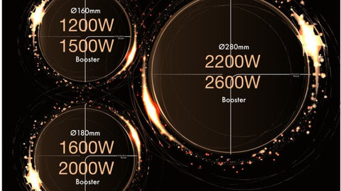 • 9 Power Levels with Booster Function: 1200W to 2600W